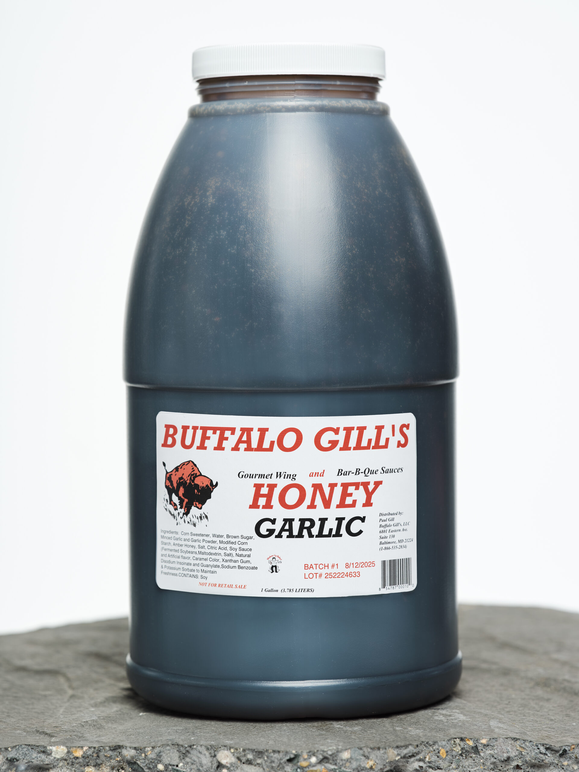 A dark brown, viscous sauce with strong flavors of garfic and honey, great on wings and chicken strips.